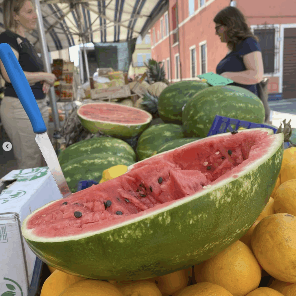 L’estate è una festa di colori e profumi che sanno di sole: tra i banchi spuntano pesche, pomodori e angurie freschissime.